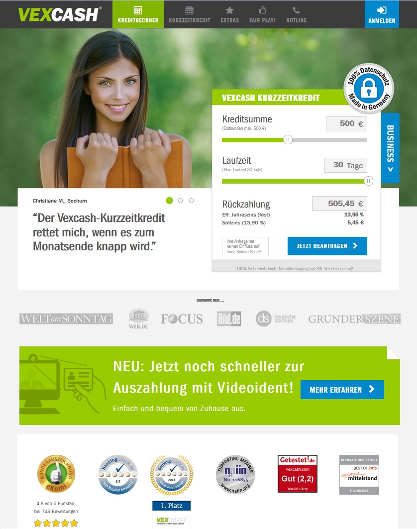 VEXCASH ist der erste Anbieter von Kurzzeitkrediten mit so kurzer Laufzeit in Deutschland. In Großbritannien und Amerika ist das Geschäftsmodell unter dem Namen PayDay Loans sehr stark verbreitet. Deutschlandweit gibt es keine direkte Konkurrenz zu VEXCASH, was das Angebot sehr exklusiv macht. Seit 2010 ist Vexcash am Markt und hat seit dem ein extrem starkes Wachstum erlebt.